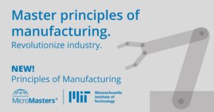 Course Overview The MITx MicroMasters in Principles of Manufacturing provides an advanced, graduate-level understanding of manufacturing systems, process control, supply chain, and quality engineering.Designed for...